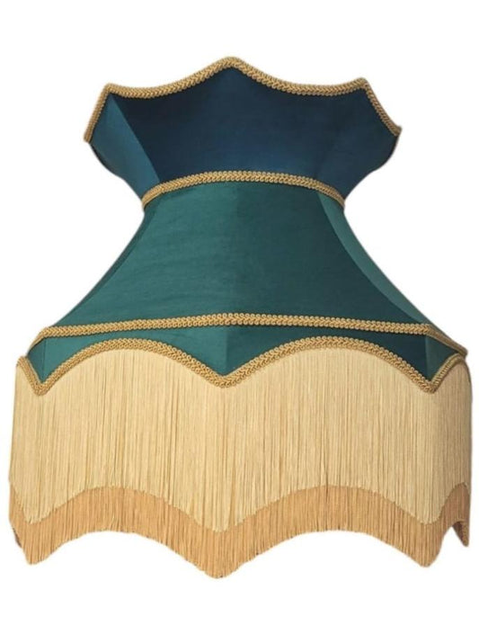 Emerald Green Velvet Traditional Dorchester Lampshade with Two Tone Gold Braid