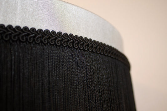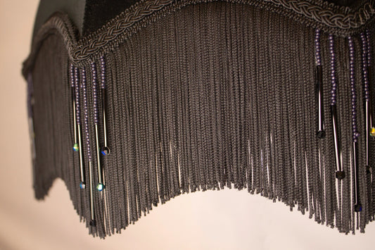 Black Velvet Lampshade with silver silky tassels